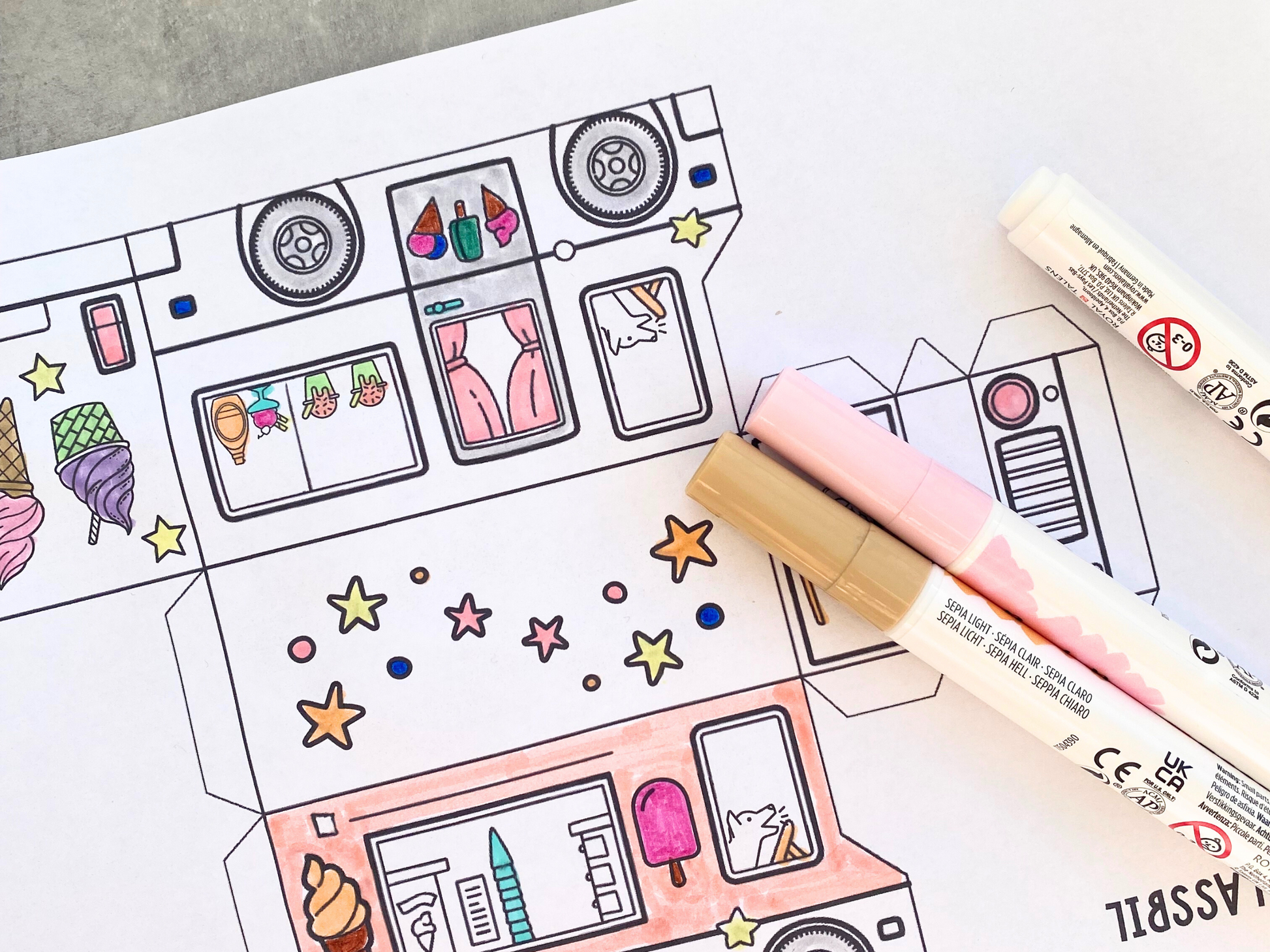 Skapa en rolig 3D-brandbil & glassbil i papper. Perfekt för pysselstunder med barnen eller som en lek.Â