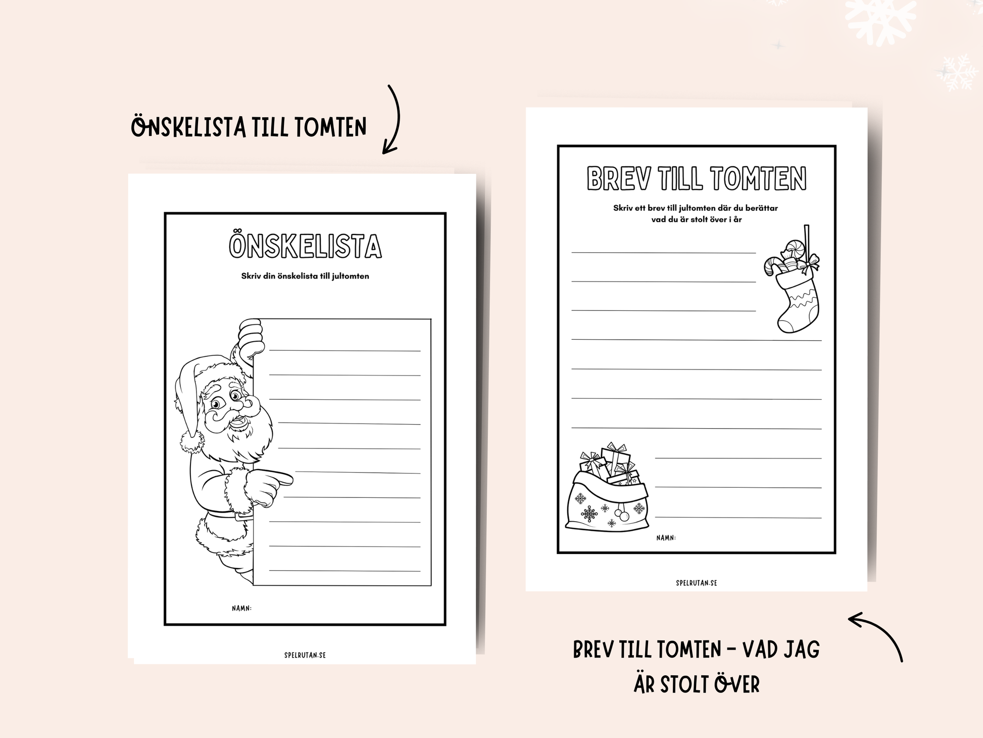 HĂ€r fĂ„r barnen skapa sitt personliga tomtebrev â en blandning av önskelista och en fin stund för reflektion. PĂ„ ena bladet skriver eller ritar de vad de önskar sig till jul, och pĂ„ det andra bladet fĂ„r de berĂ€tta nĂ„got de Ă€r extra stolta över i Ă„r.