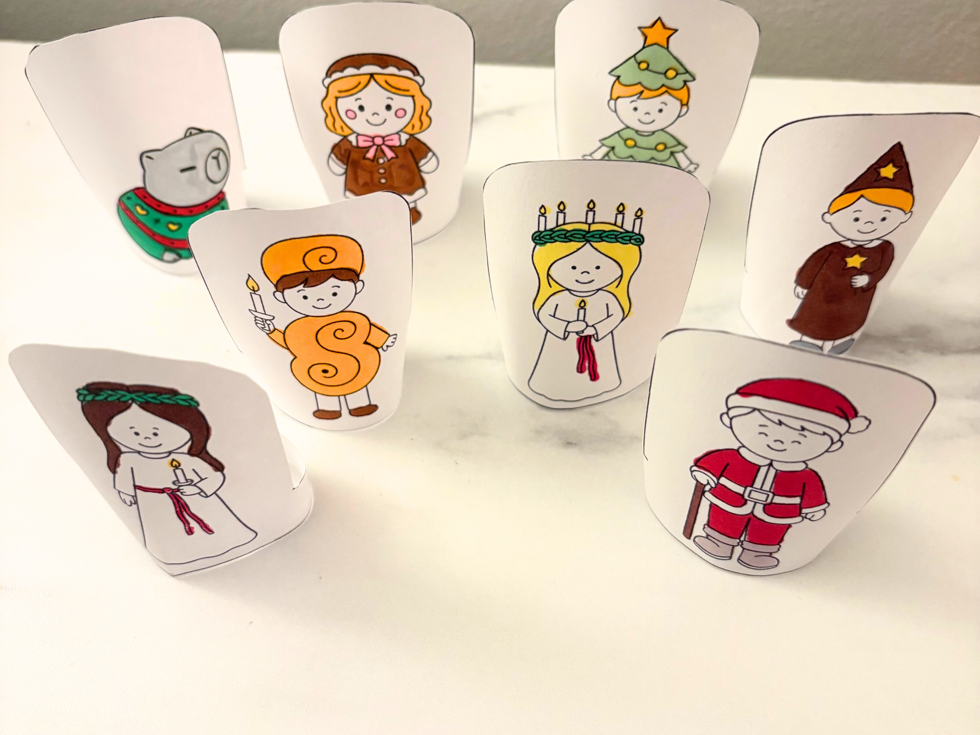 Skapa ett eget luciatÄg! HÀr fÄr du 8 luciafigurer som barnen kan fÀrglÀgga, klippa ut och anvÀnda som dekoration inför den mysigaste dagen i december.